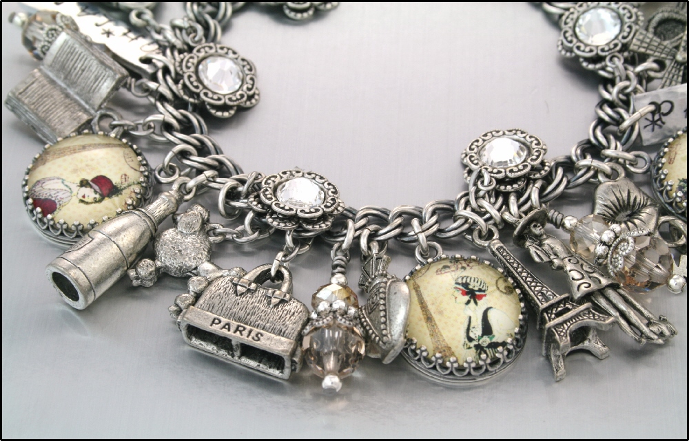 French Vintage Charm Bracelet, Silver Charm Jewelry, Oh La La Paris on Charm Bracelet In French to describe a charm bracelet, the word for charm (breloques) is added to the end. In this free frenchpod101.com lesson, you learn the words and get translations and. learn french vocabulary used for jewelry. Bracelet, strap, wristband, bangle, wristlet. A watch (une montre) is another piece of jewelry that you will want to know. If you want to. Charm Bracelet In French.